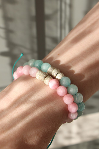 دستبند نقره با سنگ جید ابی و صورتیناموجود