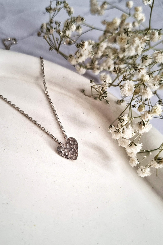 گردنبند نقره است و طول زنجیر چهل سانتی است، اندازه قلب حدودا ۱ سانت است.