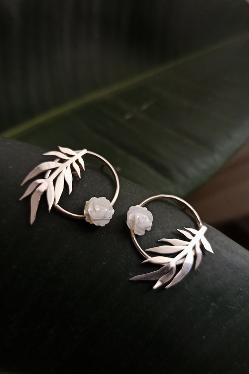 گوشواره نقره و گل صدفی