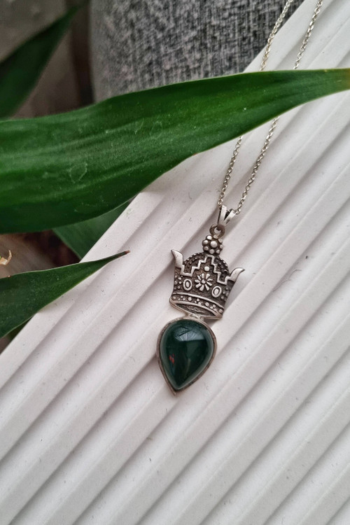 گردنبند نقره دخترونه تاج و سنگ عقیق