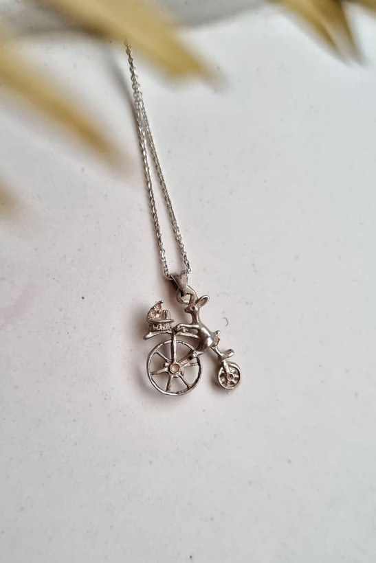 گردنبند نقره است، زنجیر چهل و پنج سانتی است.