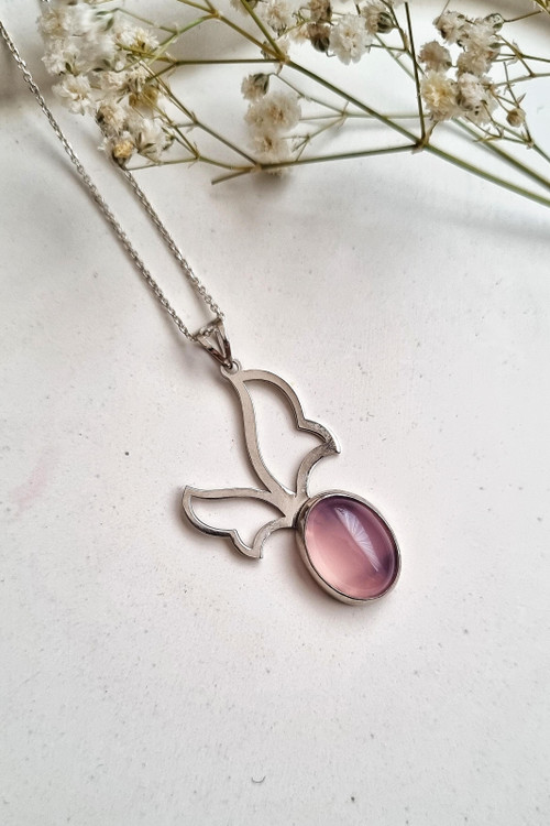 گردنبند نقره است و سنگش عقیق صنعتی است.