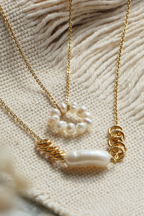 اما مروارید ها پرورشی هستن ، گردنبند پایینی مروارید باروک است.