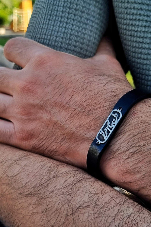 پلاک از نقره است و حک عمیق شده است و سیاه کاری شده است، متن روی پلاک (دل و جانم همه تو) ، بند چرم طبیعی است.