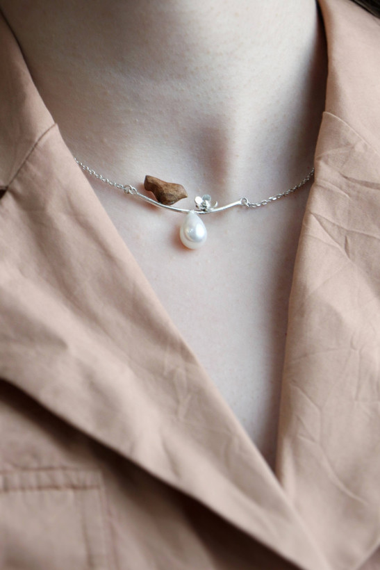 گردنبند نقره است ، جوجه از چوب گردو است، و مروارید شل است.