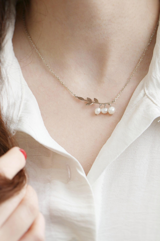 گردنبند نقره است و مروارید ها پرورشی هستن یه همین علت هر مروارید با نمونه قبلی خود متفاوت است.