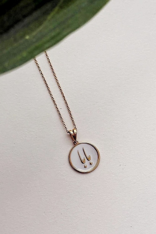 گردنبند نقره است و آبکاری طلا شده است، گردنبند میناکاری سفید شده است،
