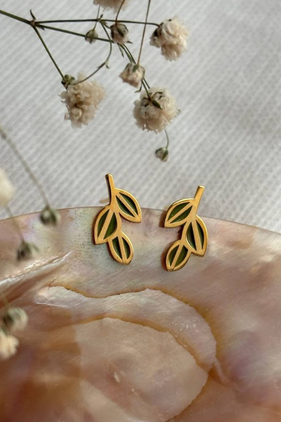 گوشواره نقره است آبکاری طلا شده و میناکاری شده است.