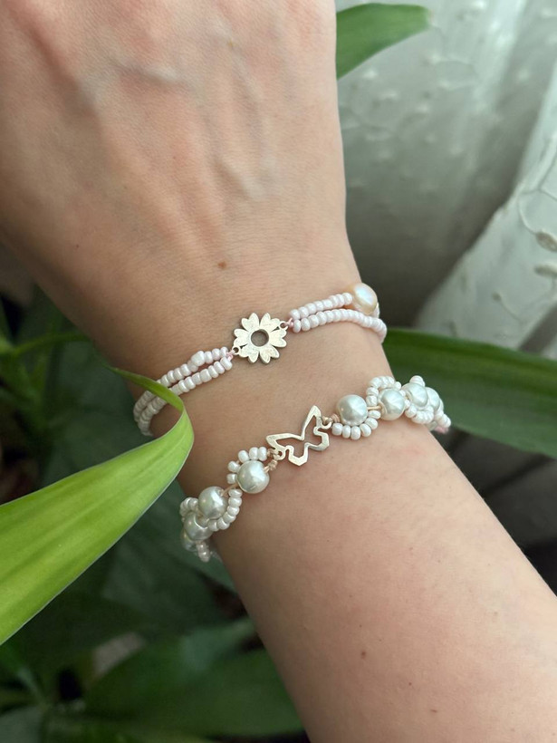 پلاک دستبند ها نقره هستن ، با بند منجوق و مروارید سنگی، گره کشویی دارد.