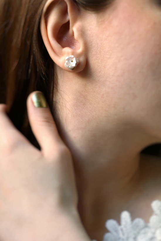 میخ گوشواره نقره است و مروارید باروک است.