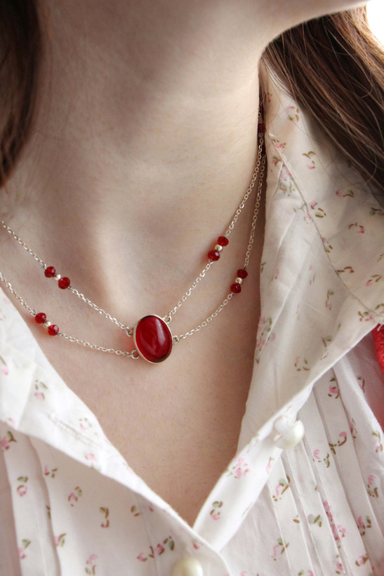 گردنبند نقره است ، نگین قرمز وسط عقیق صنعتی است .