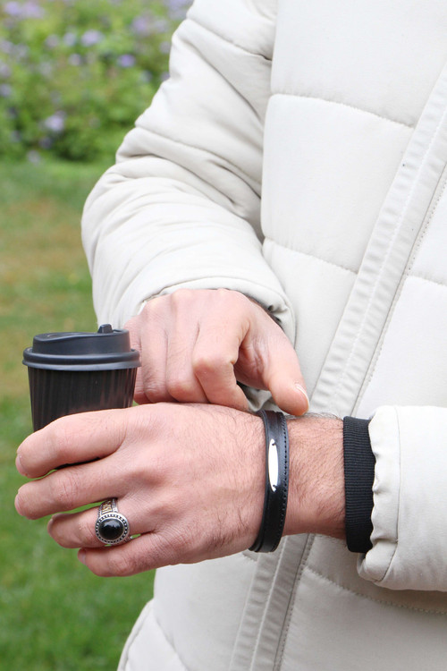 پلاک دستبند چرم است و امکان حکاکی دارد ، متن حکاکی را در قسمت توضیحات بنویسید.