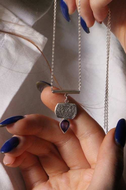 گردنبند از نقره است و سنگش آمیتیست اصل است.