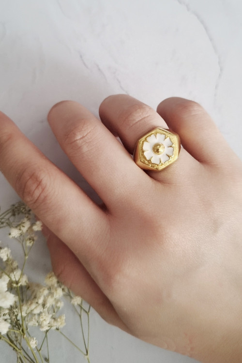انگشتر پافیلی شیش ضلعی با گل بابونه